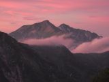 ロゼワインのごとき夕照 北アルプス南岳より 10月